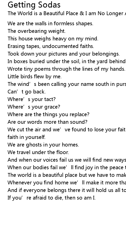 | Artist | The World is a Beautiful Place & I am No Longer Afraid to Die |