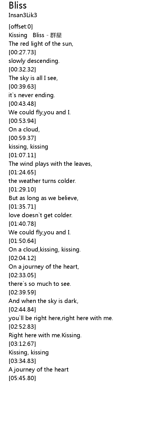 | [00:01.25] | Kissing Bliss qún xīng |