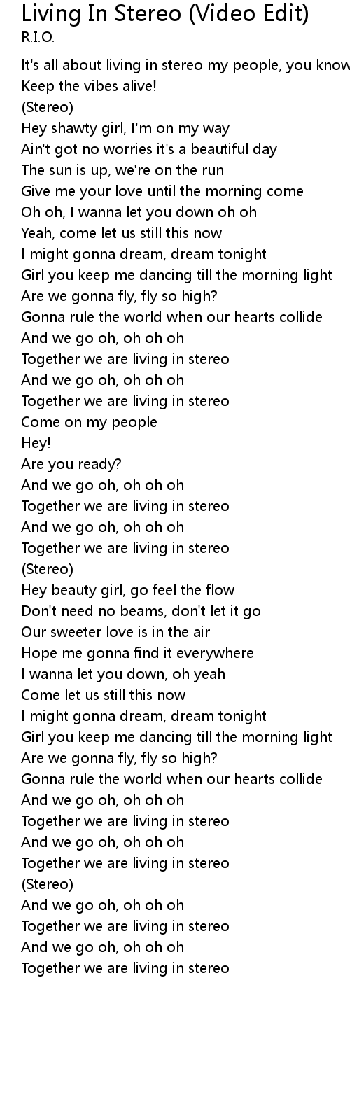 Living In Stereo (Video Edit) Lyrics