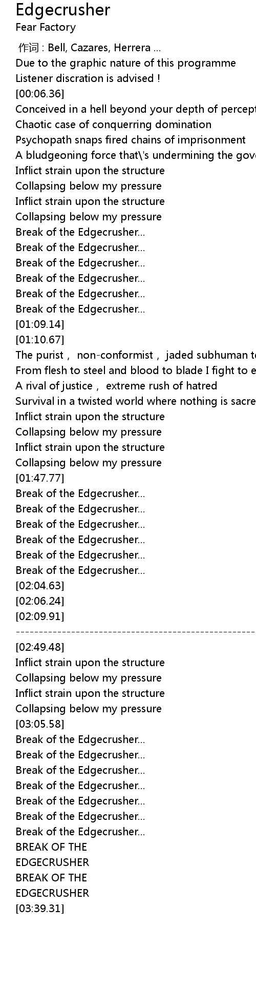 | [01:26.63] | Survival in a twisted world where nothing is sacred |