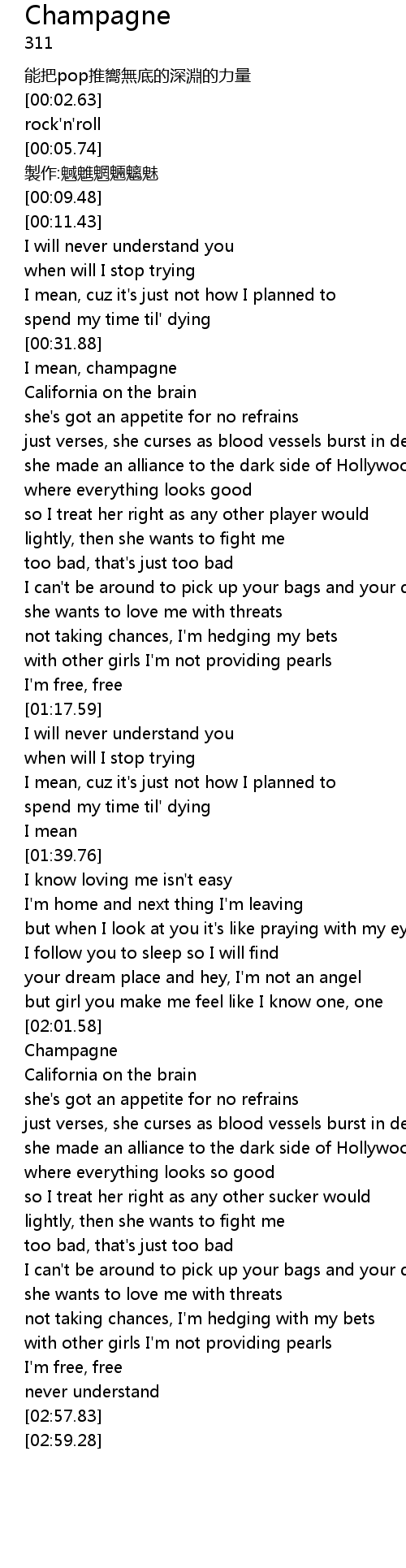 | [01:42.35] | I'm home and next thing I'm leaving |
