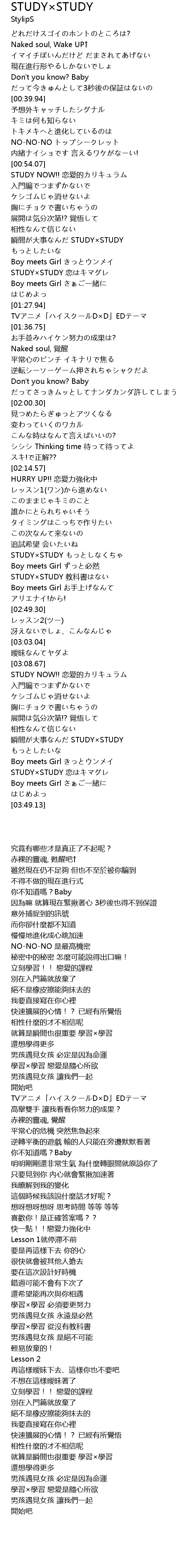 | [03:32.96] | 瞬間が大事なんだ STUDY×STUDY |