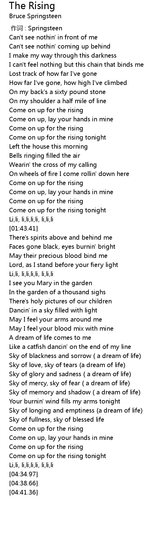 | [00:43.73] | Come on up for the rising |