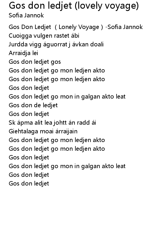 | [00:00.326] | Gos Don Ledjet Lonely Voyage Sofia Jannok |