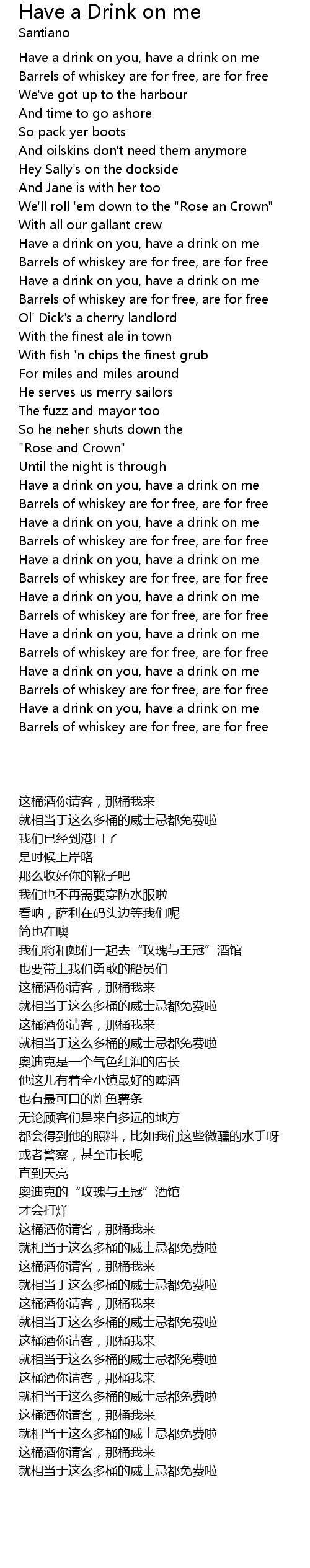 Have a drink on you, have a drink on me |
