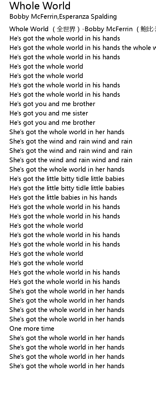 | [00:32.215] | He' s got the whole world in his hands the whole world in his hands |