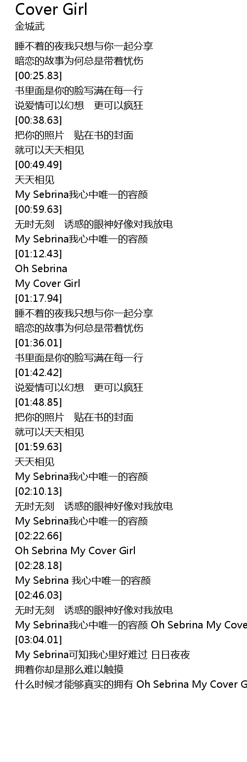 | [02:23.52] | Oh Sebrina My Cover Girl |