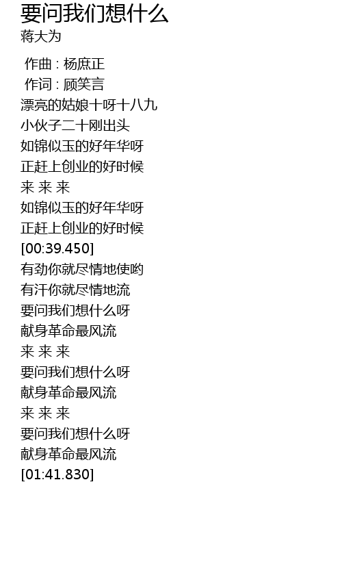 | [00:53.490] | yao wen wo men xiang shen me ya |