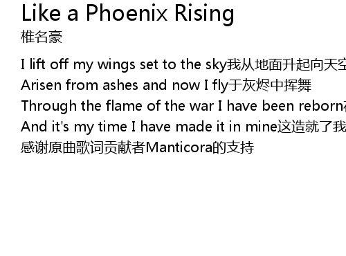 | [00:07.91] | Arisen from ashes and now I fly于灰烬中挥舞 |