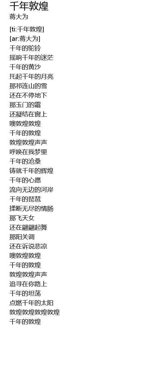 | [03:46.863] | 敦煌敦煌敦煌敦煌 |