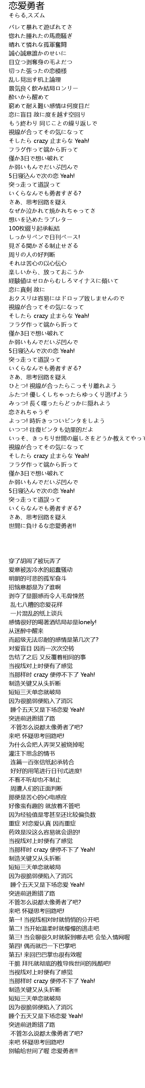 | [03:47.120] | 世間に負けるな恋愛勇者!! |