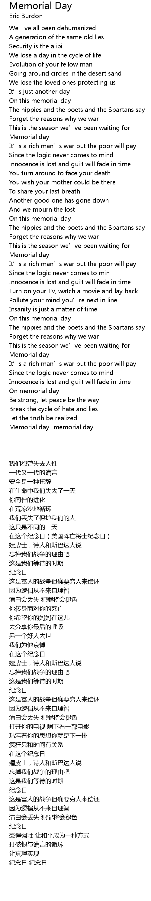 | [00:49.45] | On this memorial day |