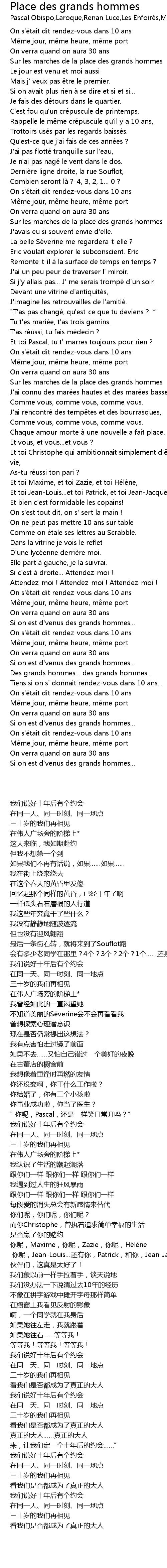 | [03:10.66] | Et toi JeanLouis... et toi Patrick, et toi JeanJacques ? |