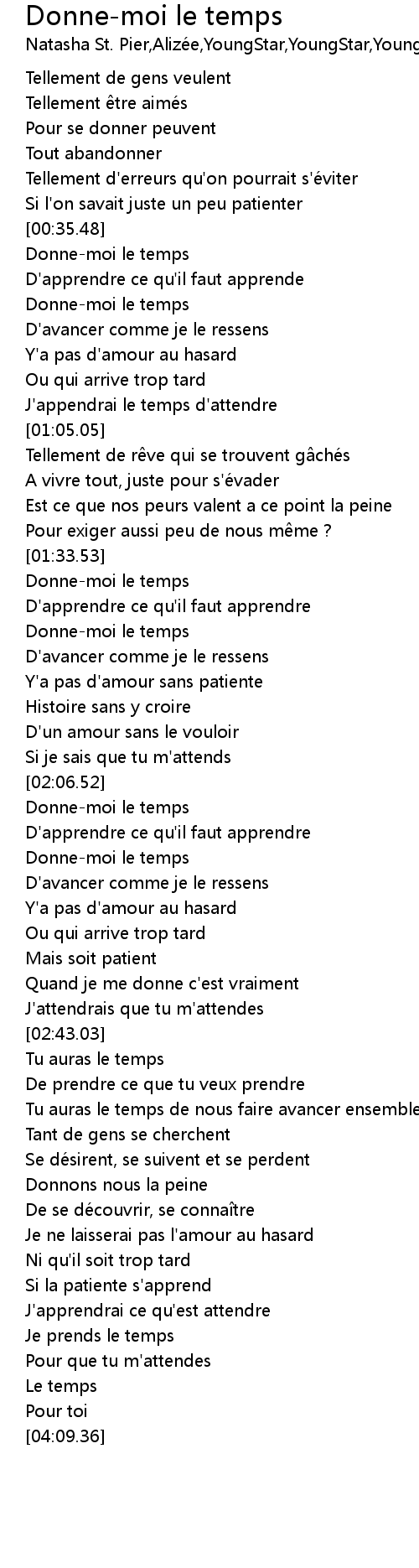 | [02:54.13] | Tu auras le temps de nous faire avancer ensemble |