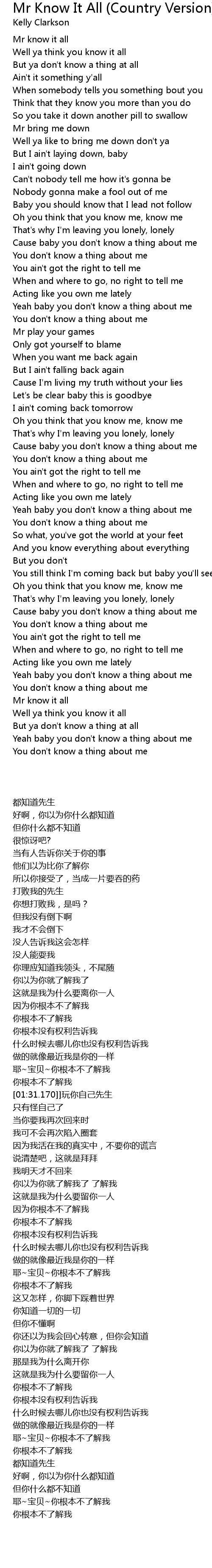 Mr Know It All (Country Version) Lyrics