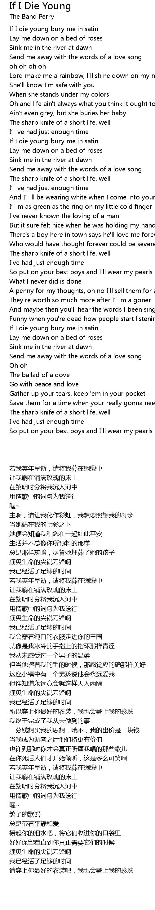 | [02:47.190] | If I die young bury me in satin |