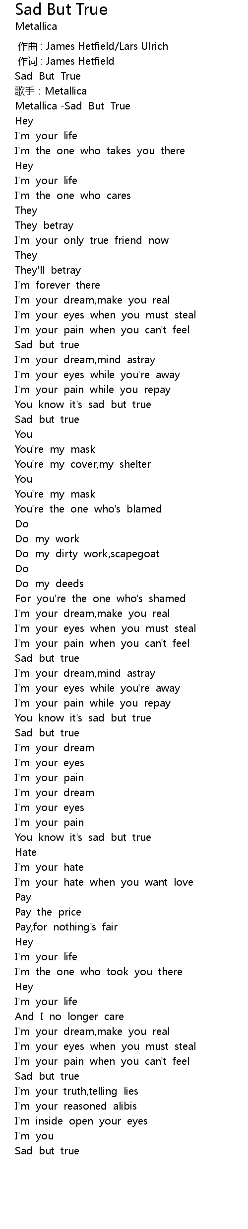 | [00:00.00] | zuo qu : James Hetfield Lars Ulrich |