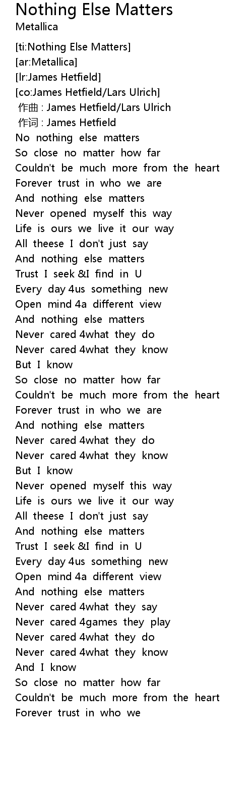 | [00:00.00] | zuo qu : James Hetfield Lars Ulrich |