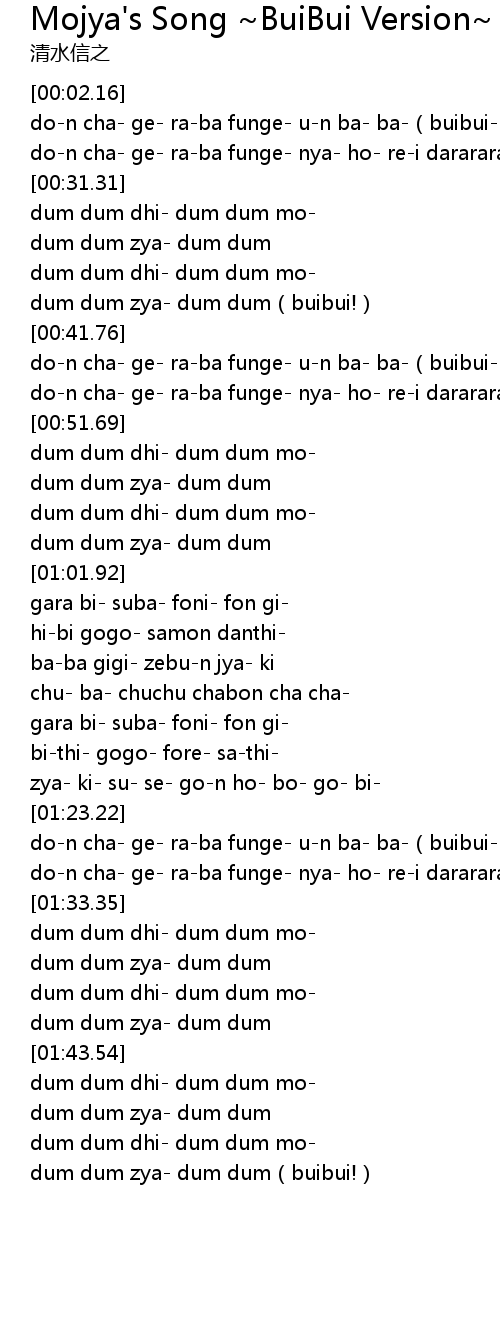 | [00:42.08] | do-n cha- ge- ra-ba funge- u-n ba- ba-(buibui-mojyajya!) |