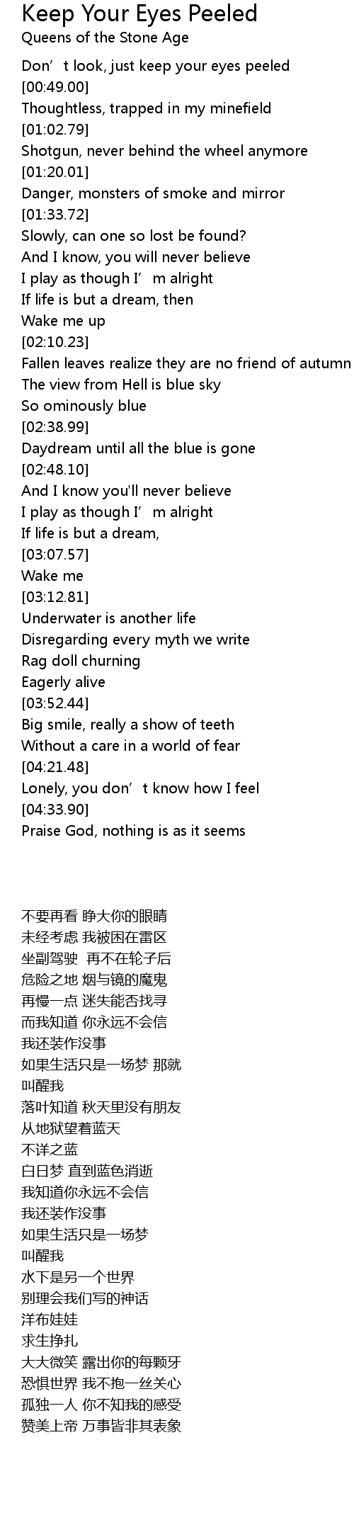 | [00:40.79] | Don’t look, just keep your eyes peeled |