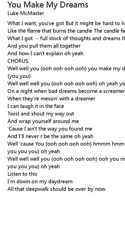 Well well well you (ooh ooh ooh ooh) oh yeah you make my dreams come true |
