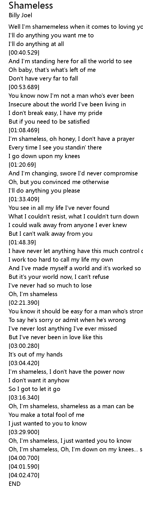 Oh, I'm shameless, Oh, I'm down on my knees... shameless |