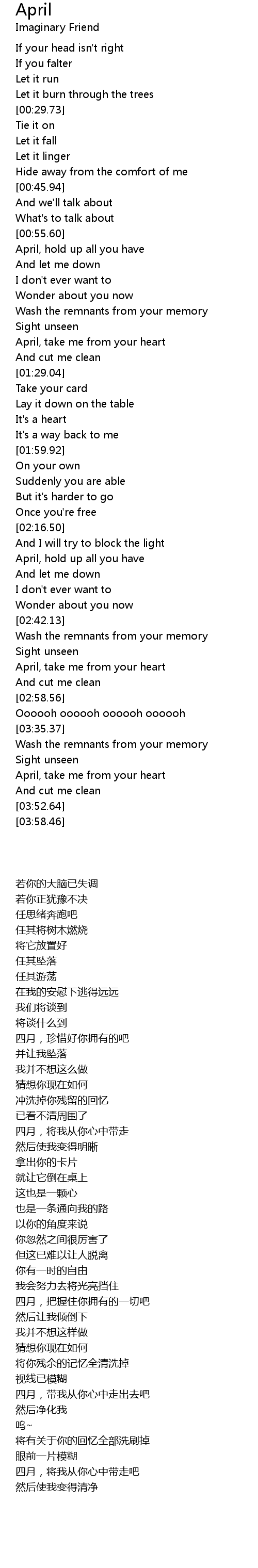 April, take me from your heart |