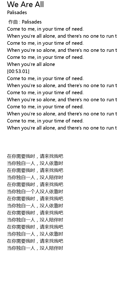 | [01:15.97] | When you're so alone, and there's no one to run to. |