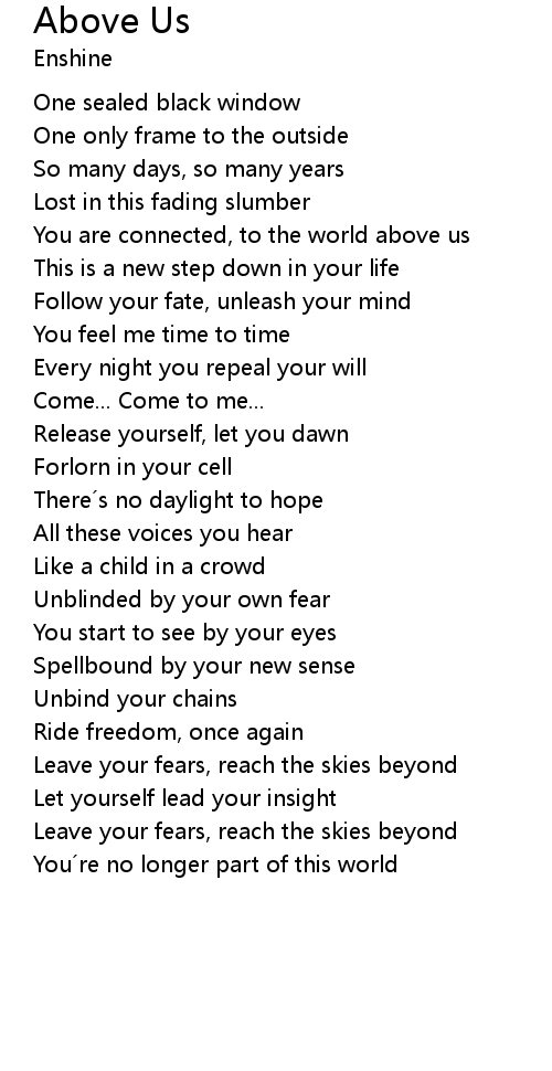 | You are connected, to the world above us | |