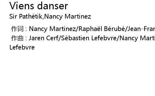 | [00:00.000] | 作词 : Nancy Martinez/Raphaël Bérubé/Jean-François Lefebvre |