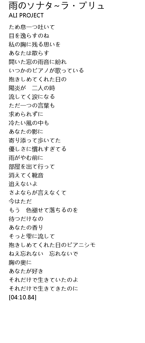 | [03:11.12] | 抱きしめてくれた日のピアニシモ |