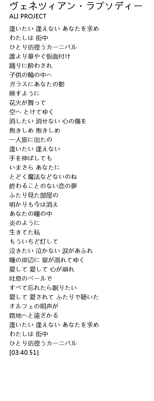 | [03:35.85] | ひとり彷徨うカーニバル |