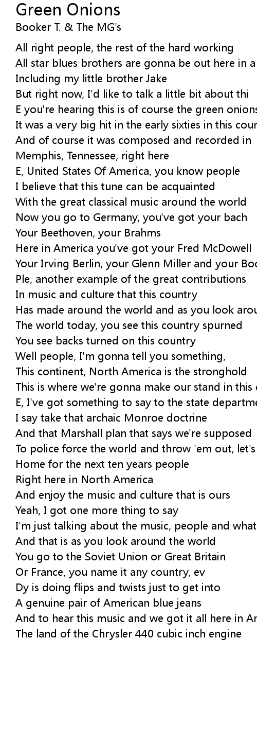 Your Irving Berlin, your Glenn Miller and your Booker T & The M.G.'s |