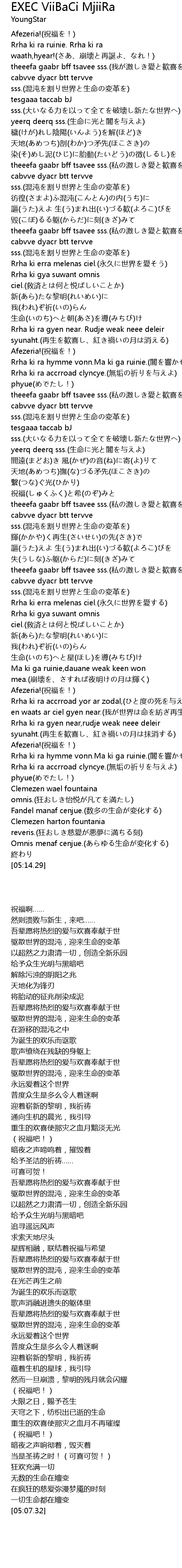 | [03:14.16] | cabvve dyacr btt tervve sss.(混沌を割り世界と生命の変革を) |