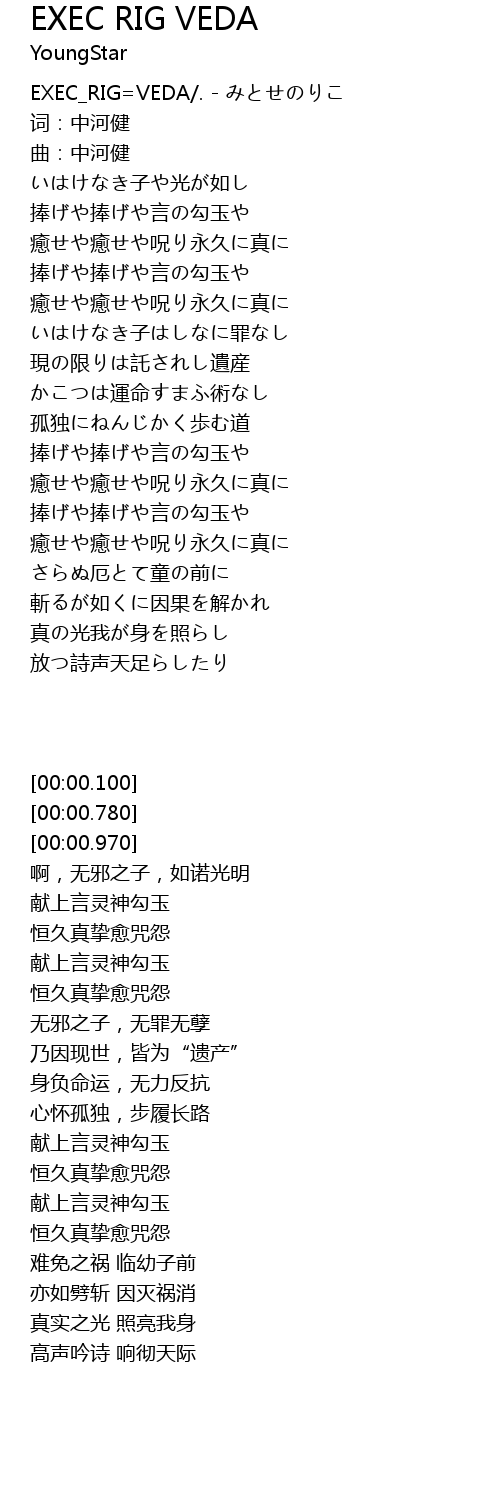 | [00:00.100] | EXEC_RIG=VEDA/. - みとせのりこ |