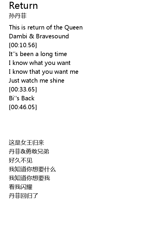 | [00:02.29] | This is return of the Queen |
