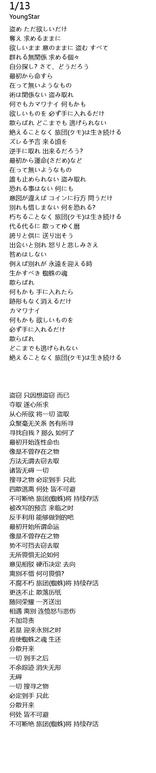 | [01:08.76] | 絶えることなく 旅団(クモ)は生き続ける |