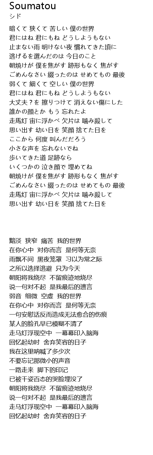 | [01:46.290] | 大丈夫?を 擦りつけて 消えない傷にした |