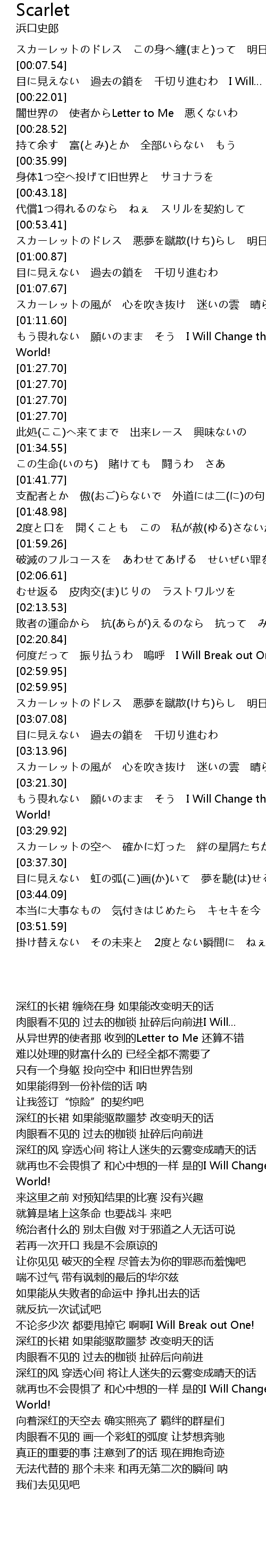 | [03:00.17] | スカーレットのドレス 悪夢を蹴散(けち)らし 明日を変えてけるなら |