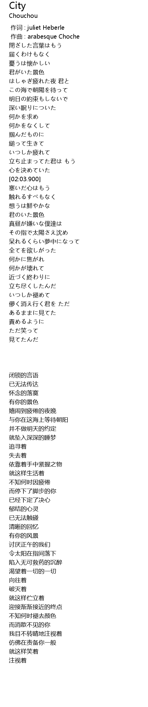 | [00:01.000] | zuo qu : arabesque Choche |
