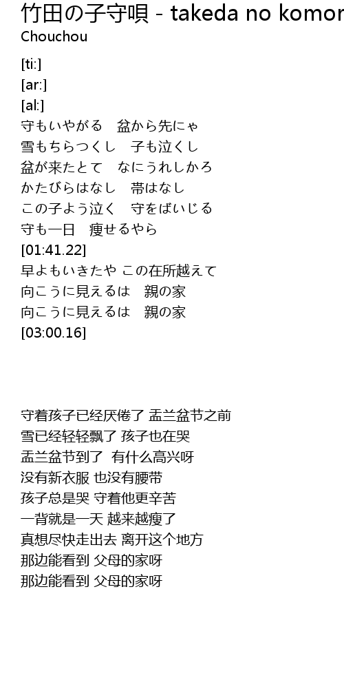 | Song | 竹田の子守唄 - takeda no komoriuta |