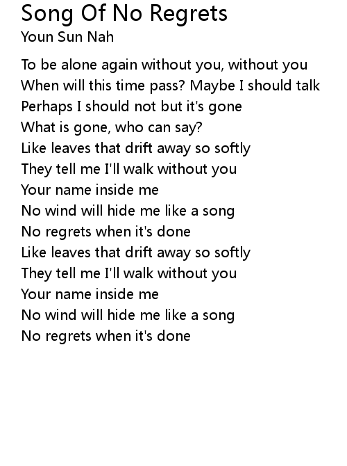 | Song | Song Of No Regrets |