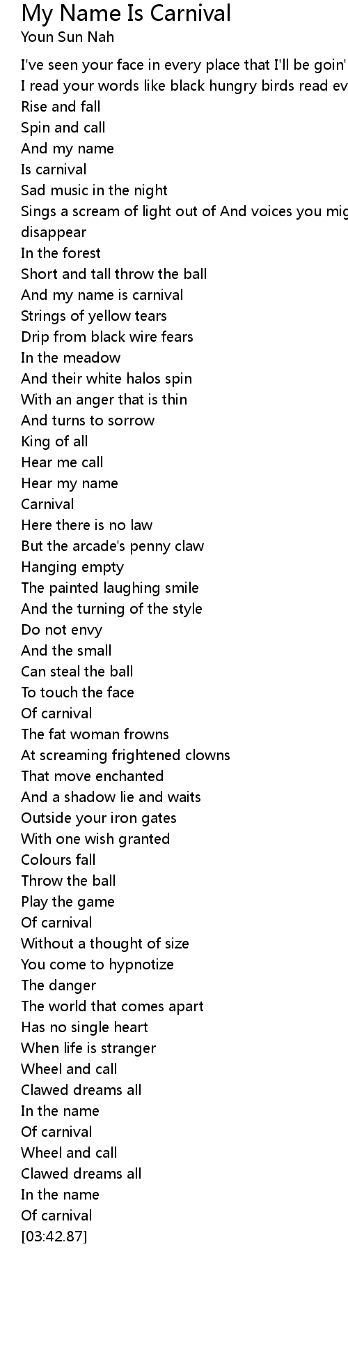 And my name is carnival |