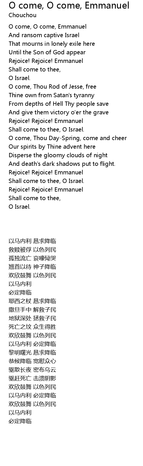 O come, O come, Emmanuel |