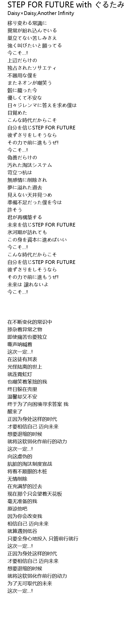 | [01:51.050] | 未来を信じSTEP FOR FUTURE |