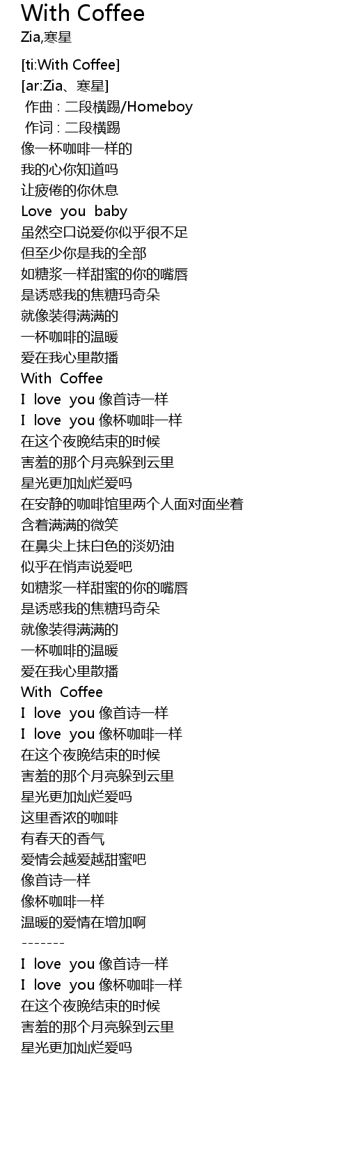 | [02:57.379] | I love you 像杯咖啡一样 |