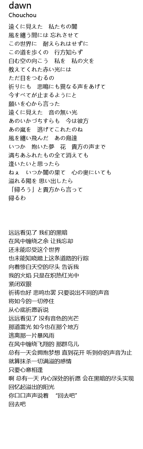 | [01:13.62] | 白む空の向こう 私を 私の火を |