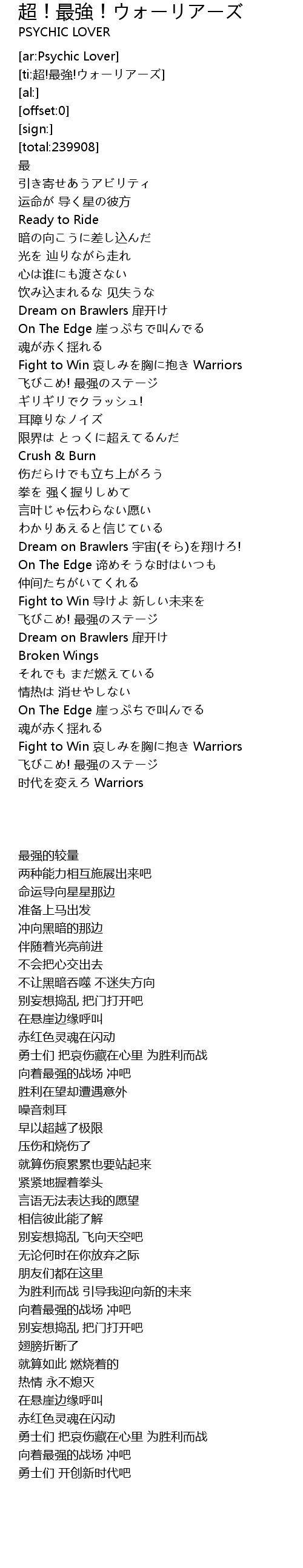 | [02:14.56] | Dream on Brawlers yu zhou xiang! |