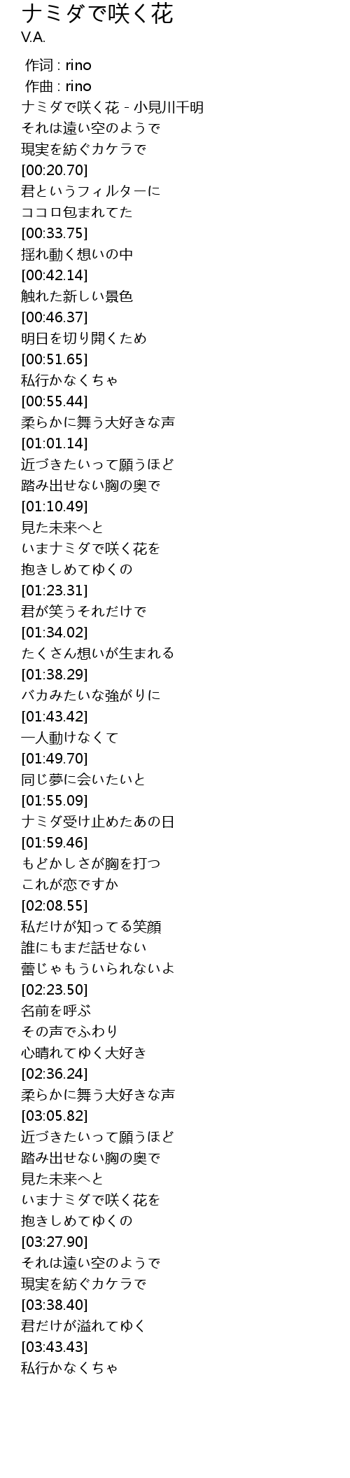 | [00:00.04] | ナミダで咲く花 - 小見川千明 |