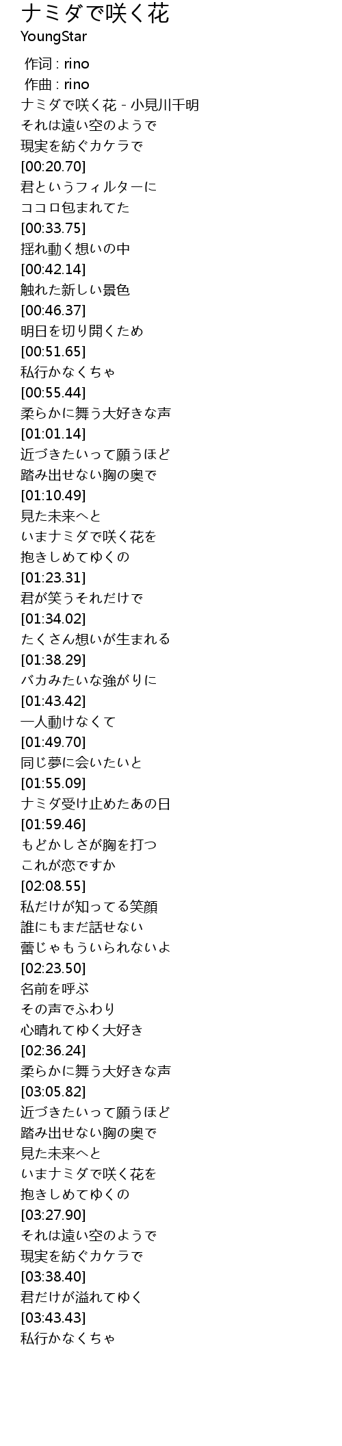 | [03:20.27] | いまナミダで咲く花を |